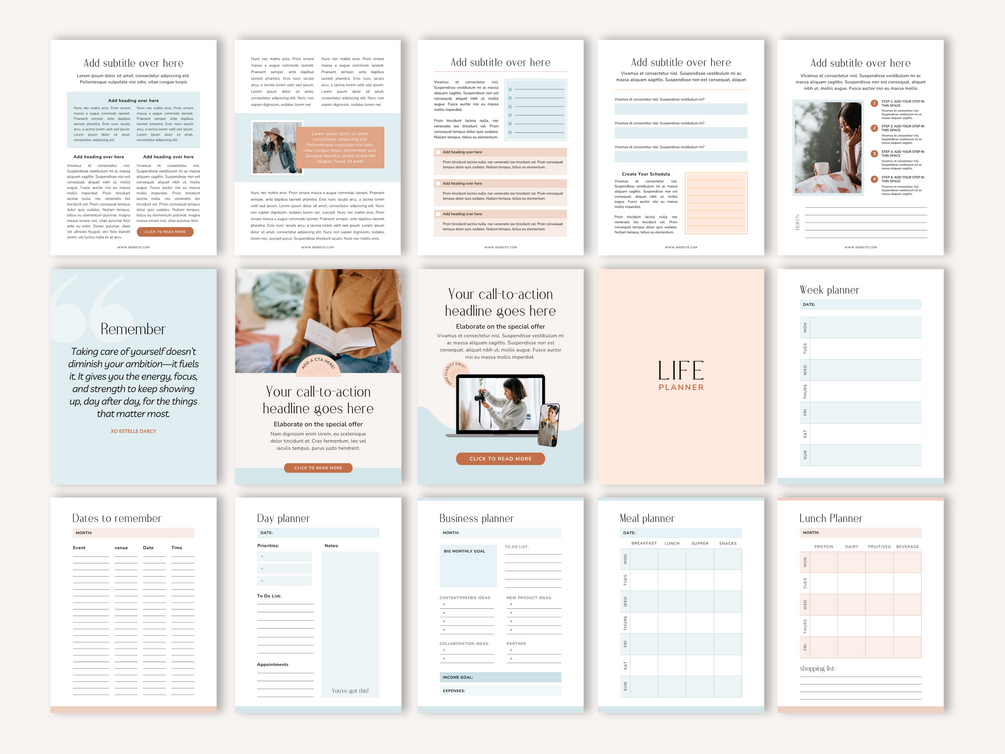 • Planner Pages: Keep your audience organized and inspired with functional and aesthetic planner templates. Perfect for goal-setting, time-blocking, and daily task management.