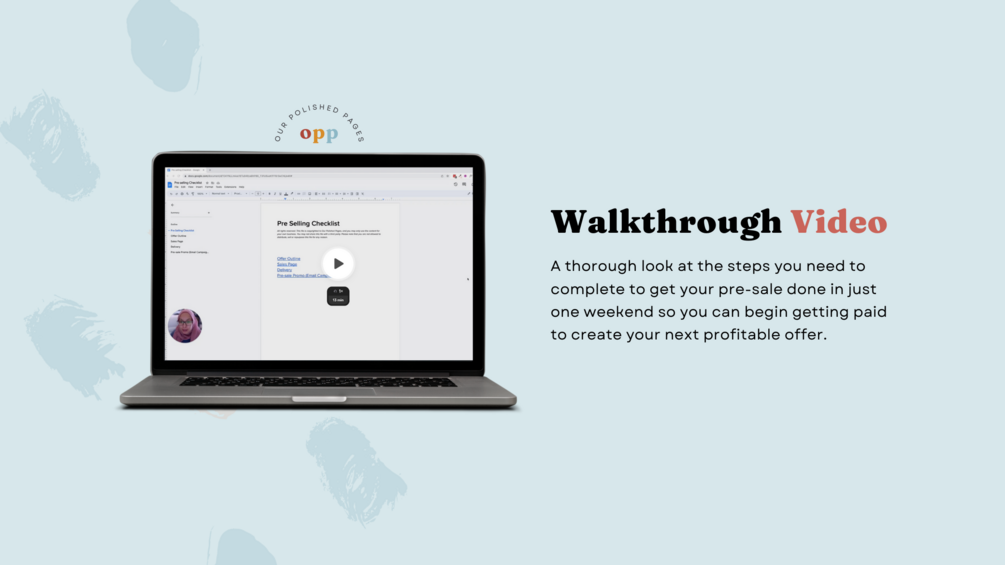 The interactive checklist takes you through my 3 phase pre-selling process so you can setup your pre-sale with ease, making it super low effort - - because your TIME is THE MOST valuable thing you have.