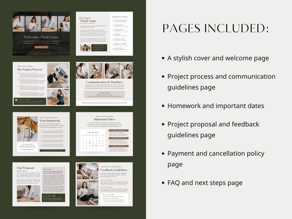 A 10+ page welcome packet template to create a professional onboarding experience for your VIP day client!